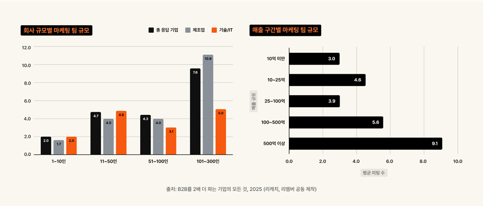 – ‘마케팅 팀’의 회사 규모 및 매출 구간별 규모
