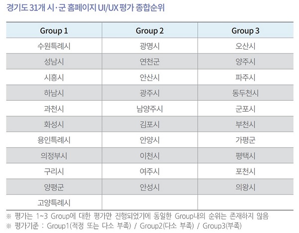 경기도 31개 시·군 홈페이지 UI·UX에 대한 첫 성적표가 나왔다.