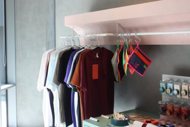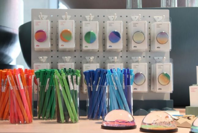 1층 입구로 들어서면 브랜드숍이다. ‘아는 형님’, ‘효리네 민박’, ‘뉴스룸’ 등 개별 프로그램은 물론 JTBC의 브랜드 컬러와 서체 등을 활용한 굿즈들을 판다. 뉴스룸 스튜디오를 본떠 만든 블록완구, 아는 형님에서 쓰는 뿅망치 같은 소품부터 티셔츠, 머그컵, 그립톡이나 스마트폰 스트랩, 펜, 노트, 마스킹 테이프 등 종류도 다양하다. 하나같이 다양한 색으로 구성됐다. JTBC 디자인 요소를 반영한 파스텔톤의 가구들까지 들어선 공간을 보면 이곳이 온통 회색이라는 사실을 잊어버릴 정도다.