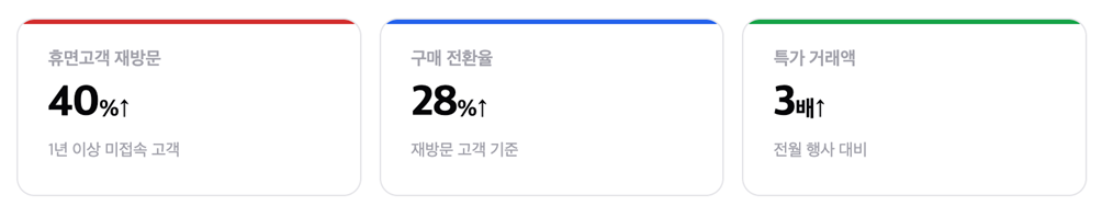 근데 진짜 중요한 건 매출이거든요. 관계자에 따르면 1년 이상 휴면상태인 고객이 돌아온 비율은 전년 대비 40% 증가했고요, 구매율 또한 28% 상승했다고 해요. 3~4개월간 접속이 없던 고객의 재방문도 25% 늘었고, 이들의 구매율은 49%까지 확대됐습니다. 비활성 고객 전반에서 회복 흐름이 나타난 거예요.