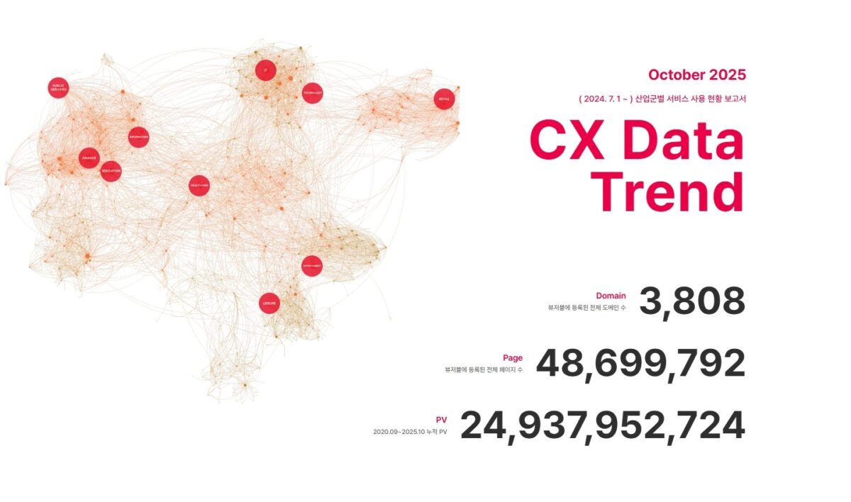 CX 트렌드 리포트는 금융·IT·공공·교육·소비/생활 등 10개 산업군을 주제로, 평균 체류 시간과 PV 집중 시간대, 신규/재방문 사용자 비율 등 다양한 정량 데이터를 제공한다. 이는 디자이너부터 마케터, 서비스 기획자, 운영자 등 디지털 업계 실무자들에게 고객 관리 및 경험 구축 개선의 기준점이 된다.