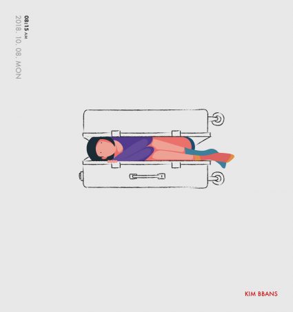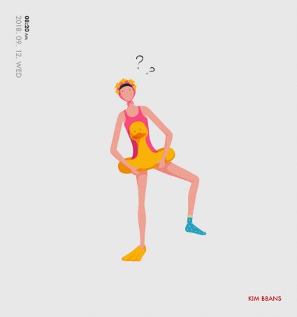 맞아요. 김빤스(@kim_bbans)라는 캐릭터를 매일매일 그리며 인스타그램이나 노트폴리오 등에 올리고 있어요. 저의 하루 24시간 중 한 조각을 그려요. 그 시간, 그 날짜에 제가 생각했던 걸 한 컷으로 담는 거죠.