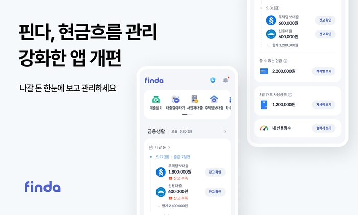 국내 핀테크 기업 핀다가 사용자의 직관적 현금흐름 관리를 돕기 위해 앱 UI·UX를 개편했다고 21일 밝혔다.