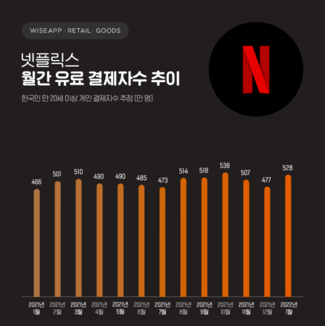 -2022년 1월 구독자수는 528만명, 수익은 역대 최대
