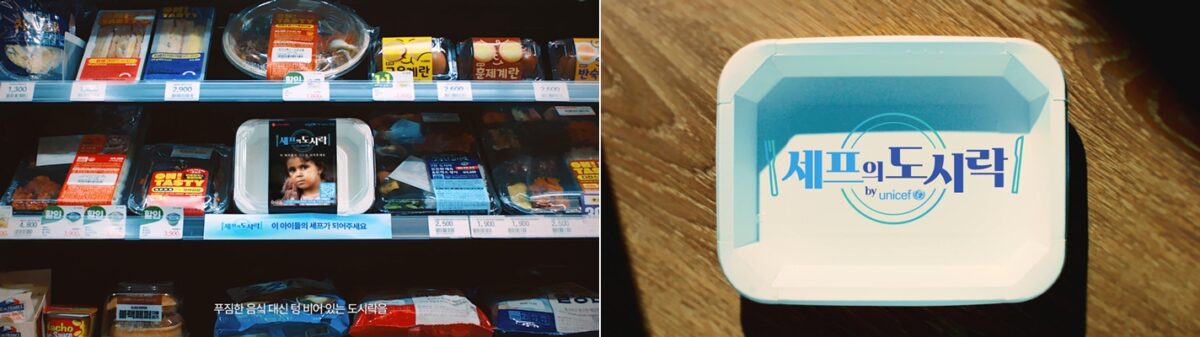 브랜드 익스피리언스 & 액티베이션 부문 대상 수상작인 유니세프 <세프의 도시락>은 편의점과 마트에 진열된 빈 도시락과 QR코드를 활용해, 전세계 기아 문제의 심각성을 알리고 누구나 쉽게 기부에 참여할 수 있도록 한 캠페인이다. 일상 속 임팩트 있는 아이디어로 캠페인 론칭 단 며칠 만에 약 4천끼의 식사가 해외 결식 아동에게 전달되며 성과를 인정받았다.
