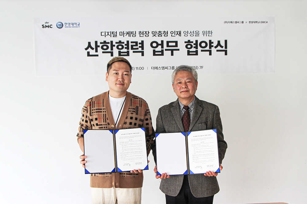뉴미디어 종합 콘텐츠 기업 ‘더에스엠씨그룹(대표 김용태)’은 한양대 에리카와 광고 산업 기술 연구 및 기업 맞춤형 인재 양성을 위한 산학협력을 체결했다고 22일 밝혔다.