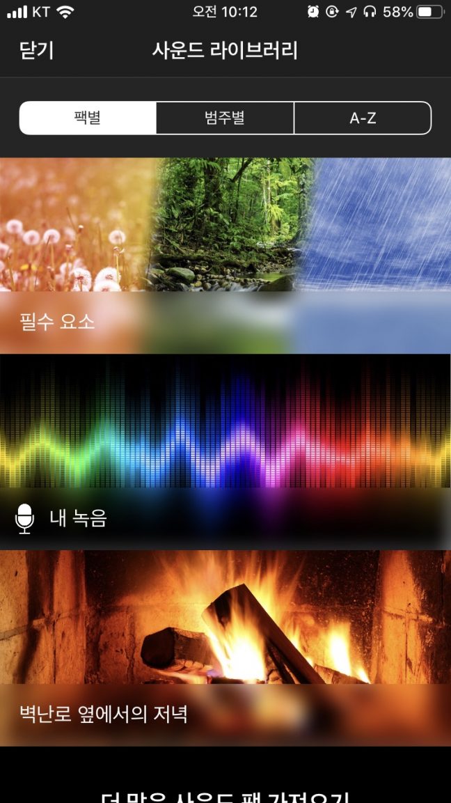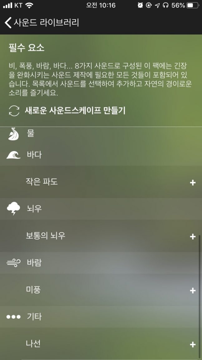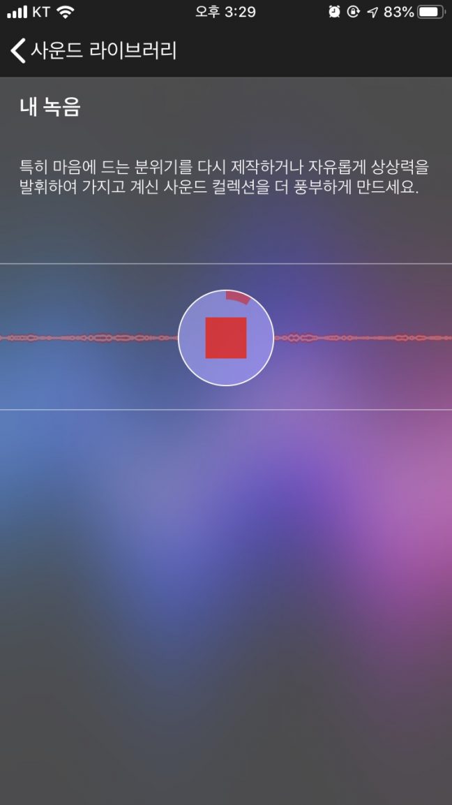 이 앱에서 가장 신선했던 기능은 직접 녹음한 소리로 나만의 사운드스케이프를 만들 수 있다는 것이다. 녹음 기능 체험을 위한 예시로 한창 일하는 중인 오후 3시 반의 회사 소리를 담아봤다. 여기저기 키보드를 두드리는 소리와 작은 노랫소리(일할 때 틀어놓는 블루투스 스피커)가 작게 들린다. 직장 동료의 작은 말소리까지 더해져 생동감 있는 나만의 백색소음을 만든 느낌이 들었다.