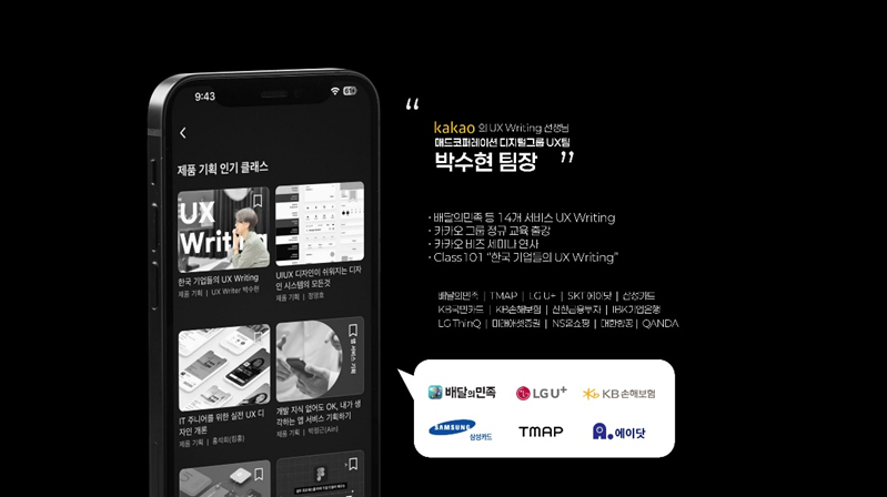 이번 강의를 이끄는 박수현 UX팀 팀장은 클래스101과 카카오를 비롯한 여러 기업들에서 다양한 온보딩 프로젝트를 수행한 실무형 전문가다. 그는 “UX Writing의 핵심은 ‘잘 쓴 문장’이 아니라 ‘문장이 이해될 수 있는 환경’”이라며 “같은 표현이라도 언제, 어디에, 어떤 화면 구조 안에서 보여지느냐에 따라 사용자 행동이 완전히 달라진다”고 강조했다.