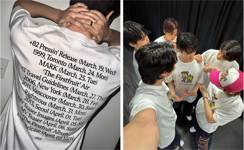 마크는 NCT 127의 월드 투어 중 멤버들과 함께 타임테이블이 적힌 티셔츠를 입은 사진을 업로드했는데요. 팬덤을 중심으로 빠르게 마크의 데뷔 소식이 공유되었죠. 티셔츠 뒷면에는 마크의 솔로 활동 타임테이블과 앨범명, 맠프리카(마크 + 파프리카 캐릭터)가 그려져 있어 팬들에게 많은 관심을 받고 있어요! 아직 판매 공지가 올라오지 않아, 티셔츠를 직접 만들었다는 후기도 확인할 수 있었죠~