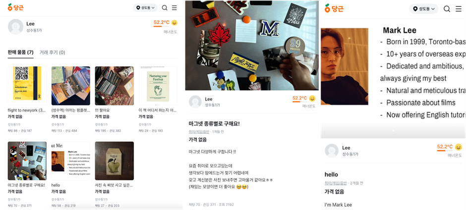 실제 당근에서 ‘LEE’라는 닉네임으로 활동하고 있었고요~ 프로모라는게 믿기지 않을 정도로 실제 판매 상품 같은 게시물, 그리고 곳곳에 숨어 있는 솔로 앨범에 대한 이스터에그, 번역 아르바이트처럼 앨범의 정체성도 잘 담겨 있어요. 디테일이 미쳤다(positive)고 할 수밖에 없네요.