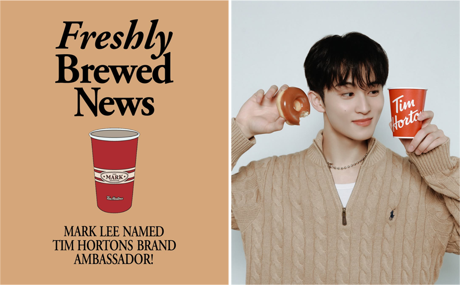 마크가 자신의 캐나다–미국–한국에서의 정체성을 프로모로 잘 풀어낸 효과인지, 캐나다의 유명 프랜차이즈 커피 브랜드 팀홀튼의 첫 한국 앰버서더가 되었어요~