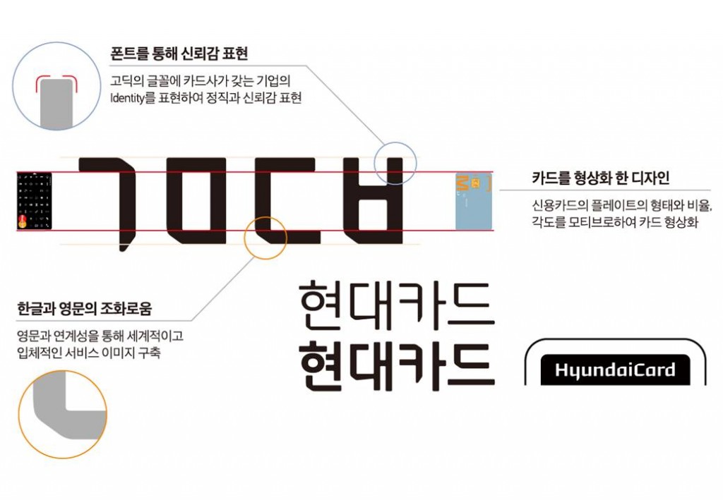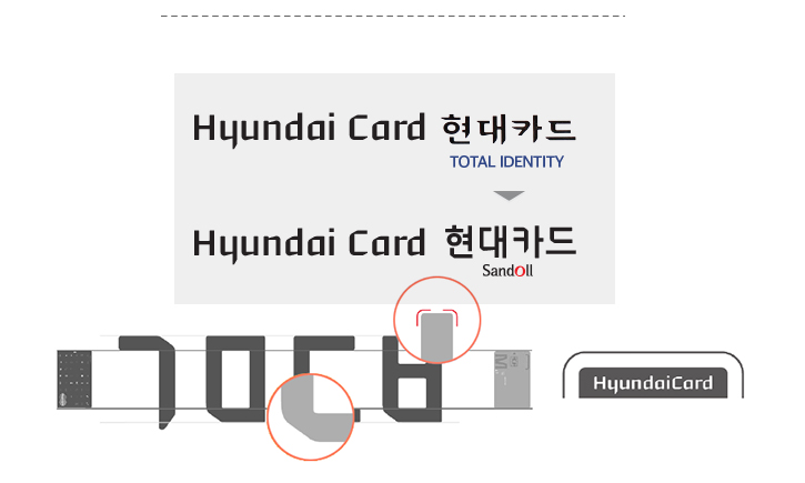 실제 ‘현대카드’ ‘배달의민족’ ‘네이버’ 등 일상에서 쉽게 찾아볼 수 있는 많은 기업이 타입 브랜딩을 활용 중이다. 현대카드는 신용카드의 형태와 비율, 각도를 그래픽 모티브로 해 카드 모양을 본떠 폰트를 만들었다.