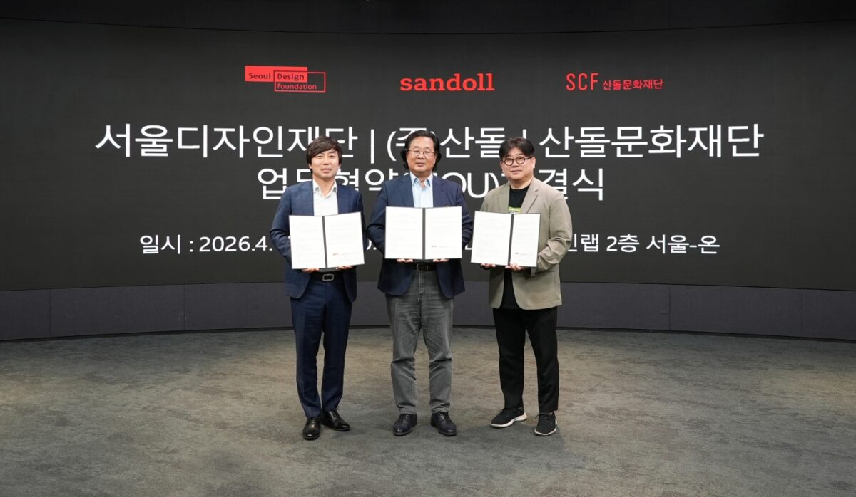 이번 협약은 지난 4월 15일 서울 동대문디자인플라자(DDP)에서 윤영호 산돌 대표, 윤철민 산돌문화재단 국장, 차강희 서울디자인재단 대표 등 주요 관계자가 참석한 가운데 진행됐으며, K-디자인 경쟁력 제고와 실무 중심의 디자인 생태계 확장을 위한 협력의 일환으로 추진됐다.