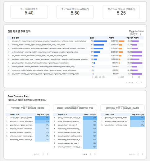 가장 기본이 되는 방식은 소재별 전환 경로를 시각화한 대시보드를 구축하는 것입니다. 대시보드는 각 소재가 고객 여정에서 어떤 단계와 순서로 노출되었는지 직관적으로 파악할 수 있게 해줍니다.