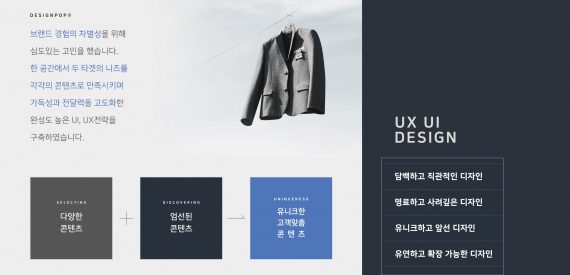 디자인팝은 항상 업계 최고, 최초라는 기준에 걸맞게 프로젝트를 완수하고자 노력합니다. 그리고 이는 곧 프로젝트 초반부터 많은 콘셉트적인 부분, 고객의 영업적 방향성, 주요 타깃 등 아주 많은 부분을 고려해야 한다는 것을 의미하기도 합니다. 특히 이번 프로젝트는 디자인팝의 강점 중 하나인 단기간 내에 프로젝트 완수라는 미션까지 이중적으로 고민해야 했습니다. 하지만 이 두 가지를 해결하기 위해 개발 구성원과 유기적인 협업을 이뤘고, 총괄인 제가 그냥 직원의 일정을 무작정 타이트하게 설정하는 것인 아니라 여러 프로젝트를 함께 진행하며 쌓아왔던 믿음을 바탕으로 프로젝트를 진행했습니다. 덕분에 고객사의 만족감도 아주 높은 상황에서 웹사이트를 오픈 할 수 있었습니다. 개발 방법론 측면에서는 업계 최초의 형태로 프로젝트를 진행하자는 큰 계획 아래 콘텐츠의 양분화(타깃별 콘텐츠 분리)를 반응형 웹에서 어떻게 구성할지 초반 단계에서 기획적으로 많은 애로사항이 있었습니다. 텍스트 이외의 콘텐츠를 기존 웹사이트·브로슈어를 통해 직접 개발 및 수정했고, 많은 이미지 보정 등을 통해 업그레이드 했습니다. 부족한 시간에도 불구하고 프로젝트 과정 내내 서로에 대한 믿음으로 많이 노력해 준 우리 개발 인원들에게 감사하다는 말을 전하고 싶습니다.