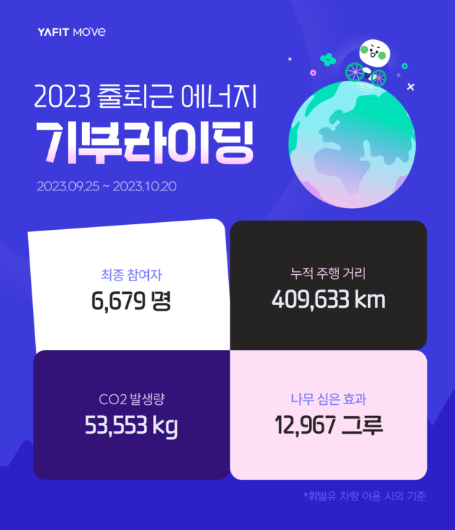 야핏무브, ‘에너지·기부라이딩 캠페인 시즌2’로 탄소배출 5만kg 저감 효과 기록