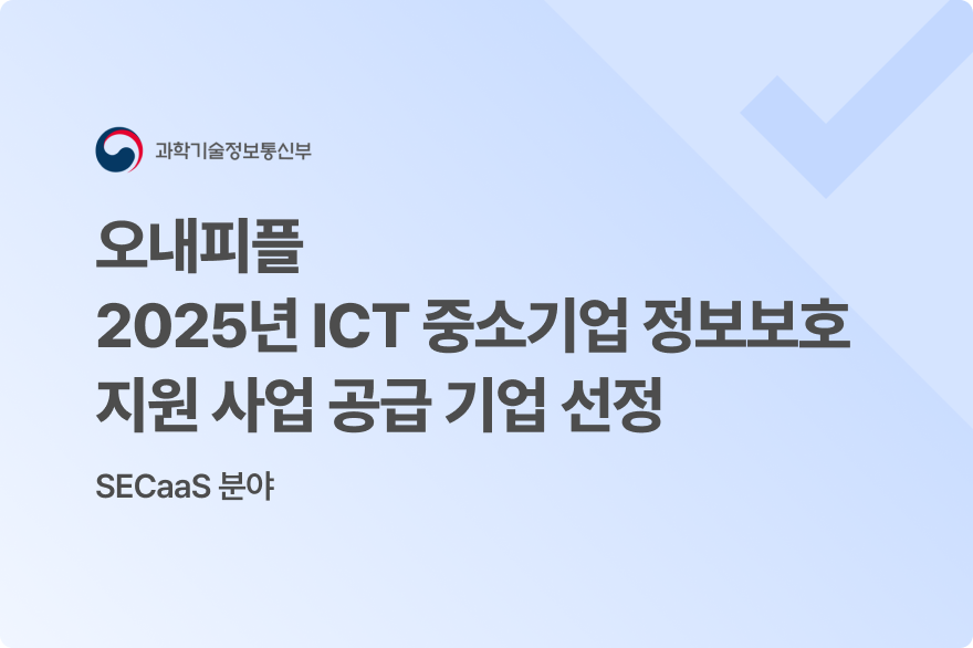 개인정보보호 전문 기업 오내피플이 과학기술정보통신부에서 주관하는 ‘2025년 ICT 중소기업 정보보호 지원 사업’의 SECaaS 분야 공급기업으로 선정되었다고 12일 밝혔다.