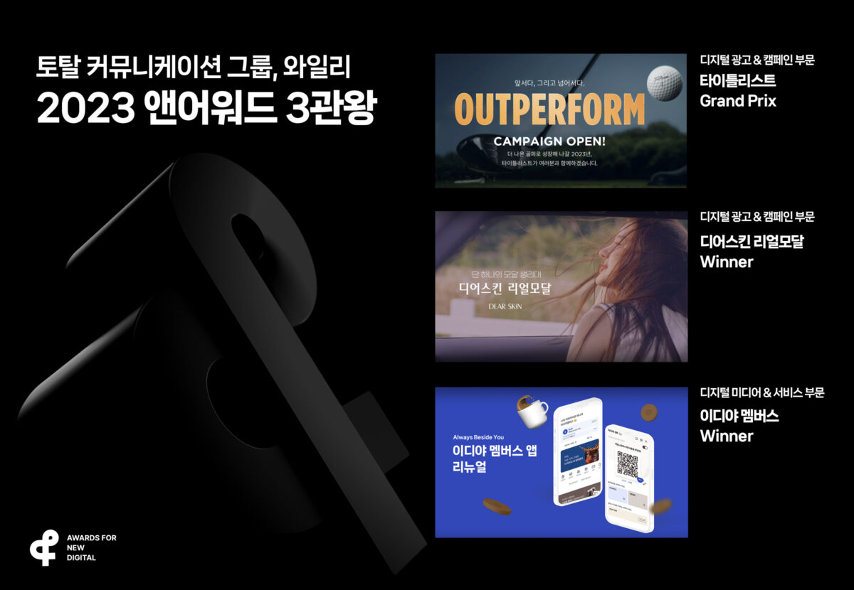 토털 커뮤니케이션 그룹 와일리(WYLIE, 대표 박수인)가 ‘2023 앤어워드’ 3개 부문에서 수상했다고 21일 밝혔다.