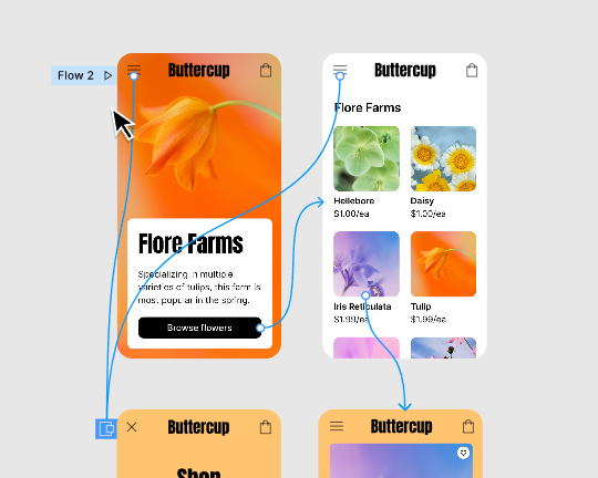 프로토타입 기능을 사용하면 특정 버튼이나 영역을 눌렀을 때 어떤 화면으로 어떤 인터랙션이 이루어질지 목업으로 볼 수 있다. 이 프로토타입 기능은 작업이 진행 중에도 중간 중간 틈틈이 사용 가능하다. 작업물이 미완성인 상태에서도 디자인이 의도대로 작동하는지, 프로젝트가 자신이 원하는 방향으로 나아가고 있는지 가늠해 볼 수 있다.