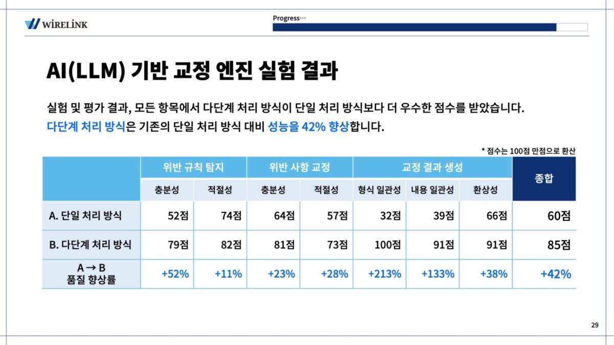 이상희 리더는 하이브리드 구조의 설계별 효과를 두고 “단일 프롬프트로 처리했을 때보다, 규칙 기반과 AI를 단계적으로 결합한 ‘다단계 처리 방식’을 적용했을 때 교정 성능이 무려 42%나 향상됐다”며 구체적인 실험 데이터를 공개해 객관성을 더했다.