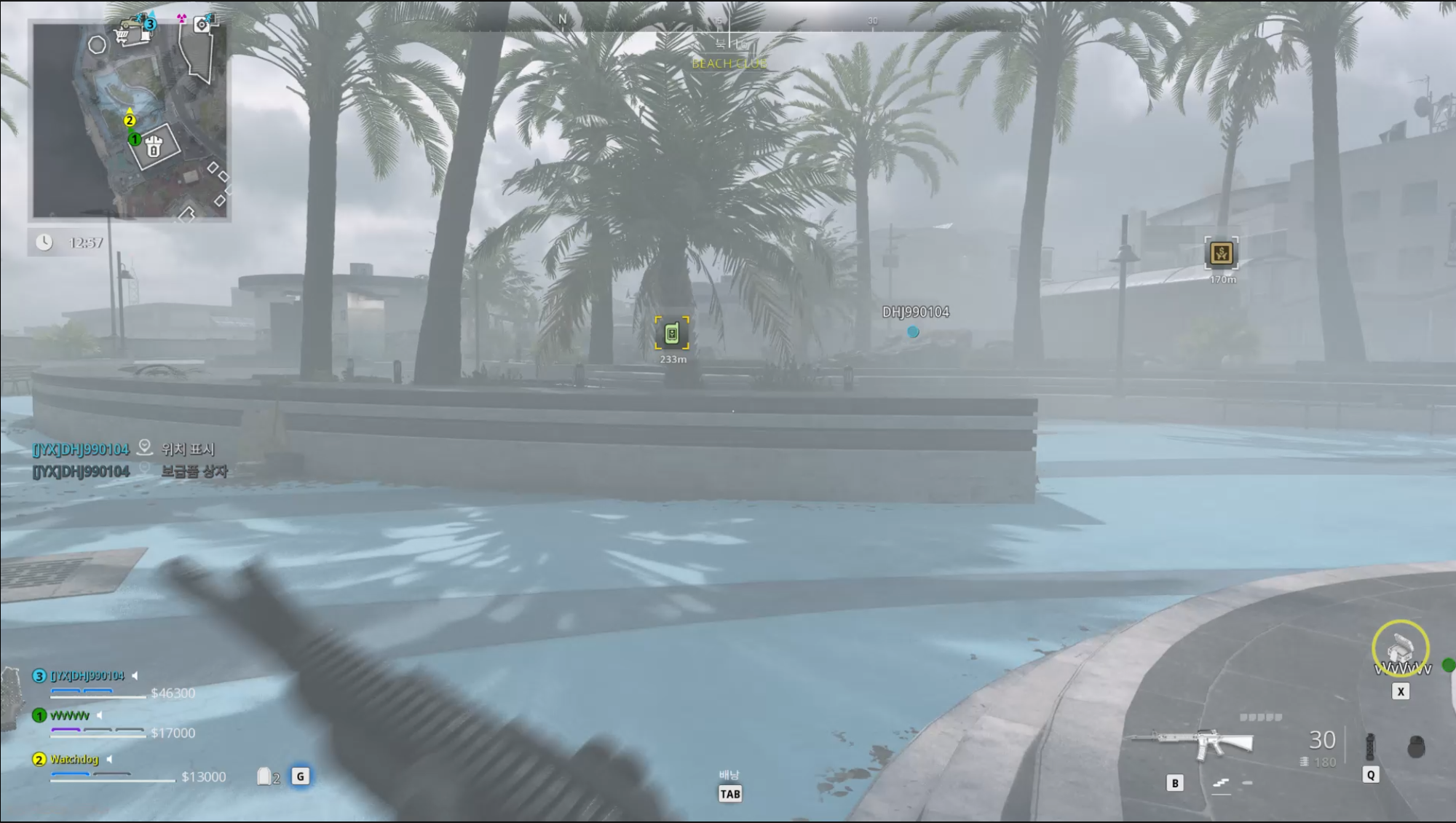 워존 DMZ의 핑과 아이콘 시스템도 훌륭하다고 느꼈는데요. 핑을 통해 상호작용할 수 있는 요소들이 많은 편인데 아이콘을 단순하면서도 비슷한 카테고리는 비슷한 색으로 배치해 순간적으로 핑의 성격을 확인하기 쉬웠습니다. 또한 적의 위치와 같이 방향이 더욱 중요한 요소는 상단 나침반 영역에도 표시를 해줌으로써 위치를 파악하기 수월하게 해주었습니다.
