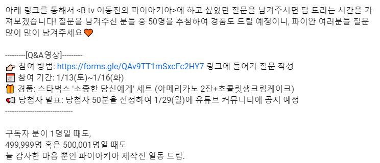 비밀 댓글로 개인정보를 수집할 수 있다면 좋겠지만, 아쉽게도 유튜브에는 비밀 댓글 기능이 없죠. 때문에 별도의 개인정보 수집 양식을 제작한 뒤 해당 링크를 통해 개인정보를 수집해야 합니다.
