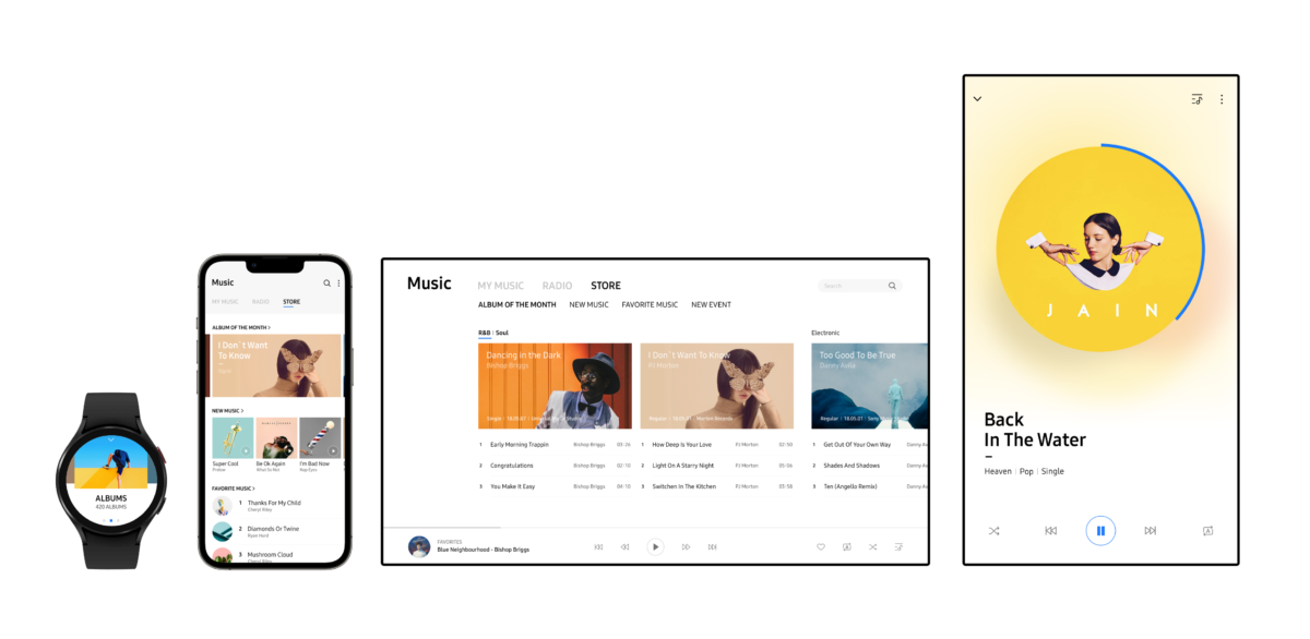 UX Visual Interaction Principle Design. 브랜드와 모션의 본질에서 ‘flow into experience’ 콘셉트를 도출하고, 세 가지 원칙으로 전개했다. 이 모션 원칙을 4대 디바이스(모바일, 워치, 냉장고, TV)에 적용해 브랜드다움을 표현하고 다양한 디바이스에서도 일관된 경험을 제공한다.