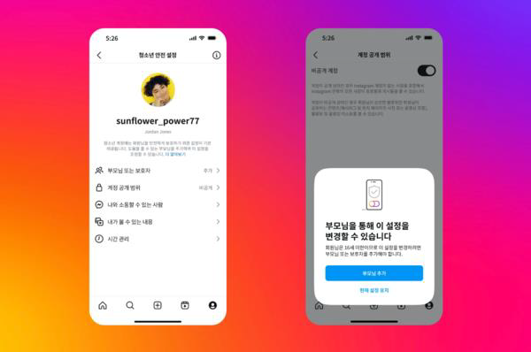계정이 기본적으로 비공개로 설정되며 만17세 미만 청소년 대상 보호 기능 적용. 팔로워 요청 수락제와 콘텐츠 제한이 기본값으로 설정된다.