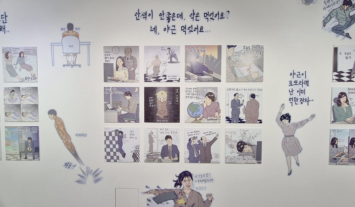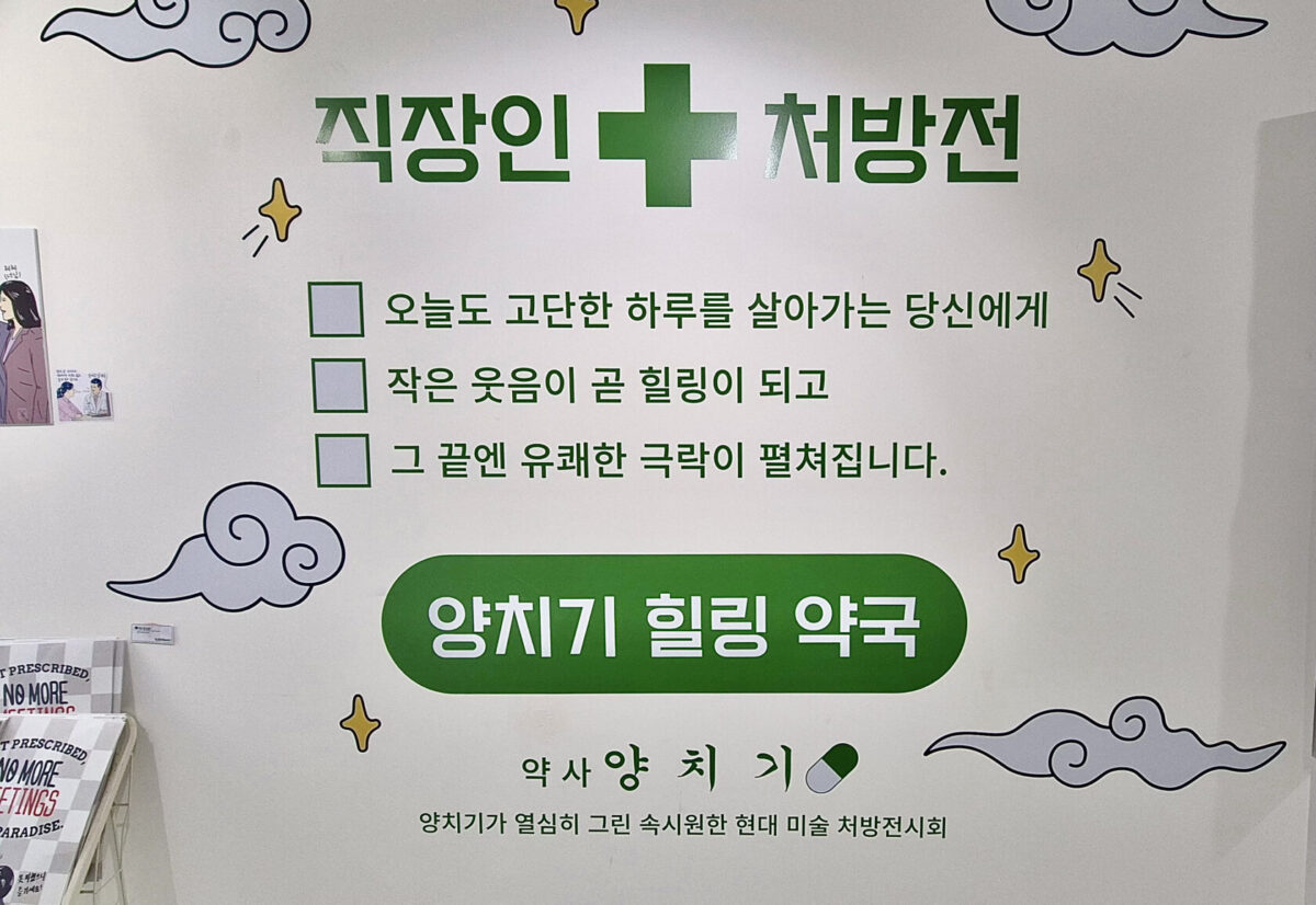 전시는 총 두 개의 층으로 구성됐다. 먼저 6층 ‘직장인 처방전’은 현대 미술적 표현을 통해 직장인들이 겪는 스트레스와 번아웃을 해소하는 ‘예술적 힐링 공간’으로 구성됐다. 작가 특유의 위트와 풍자를 통해 일상 속에서 웃음을 되찾는 처방을 제시한다.