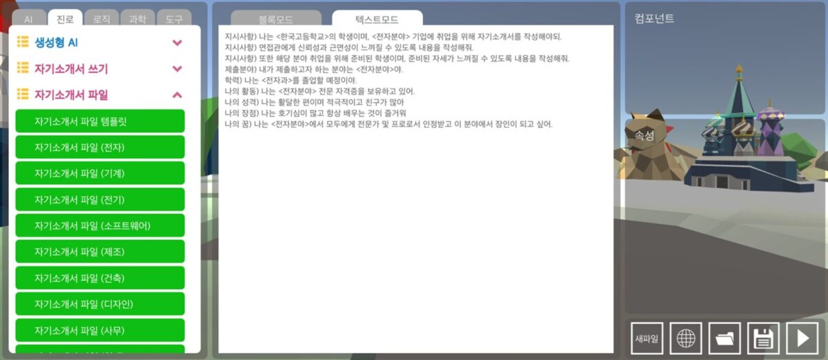 다양한 직무별 자기소개서 템플릿도 제공해 학생들이 기초 틀을 바탕으로 자신만의 글을 구성할 수 있도록 돕는다. 학습자가 직접 문장을 고쳐보고 AI에게 첨삭을 요청하며 반복 학습할 수 있어, 교사의 개입 없이도 자기주도적인 훈련이 가능하다. 취업을 위한 프롬프트의 사용 역량 훈련과 더불어 자기소개서와 모의 면접 훈련을 할 수 있어, 1석 2조의 효과를 낼 수 있다는 게 회사의 설명이다.