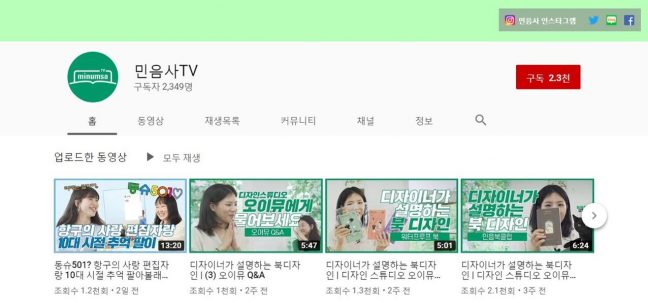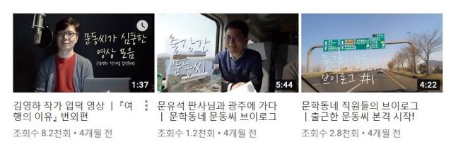 대표적인 출판사가 민음사이다. 민음사는 ‘민음사TV’ 채널 오픈과 동시에 독자들이 출판사에 대한 궁금증을 해결할 수 있는 영상을 선보였다. 그동안은 알지 못했던 출판사의 업무와 출판 마케터의 일, 편집자의 일 등을 솔직하게 풀어내며 인기를 끌었다. 또한 문학동네는 지난 4월 브이로그를 위한 채널 ‘출근한 문동씨’ 채널을 만들었다. 이 채널에는 공식 채널과는 조금 다른 콘텐츠들이 올라온다. 출판사 직원이나 북디자이너의 브이로그는 물론이며 파주의 맛집이나 동네 책방을 소개하기도 한다.