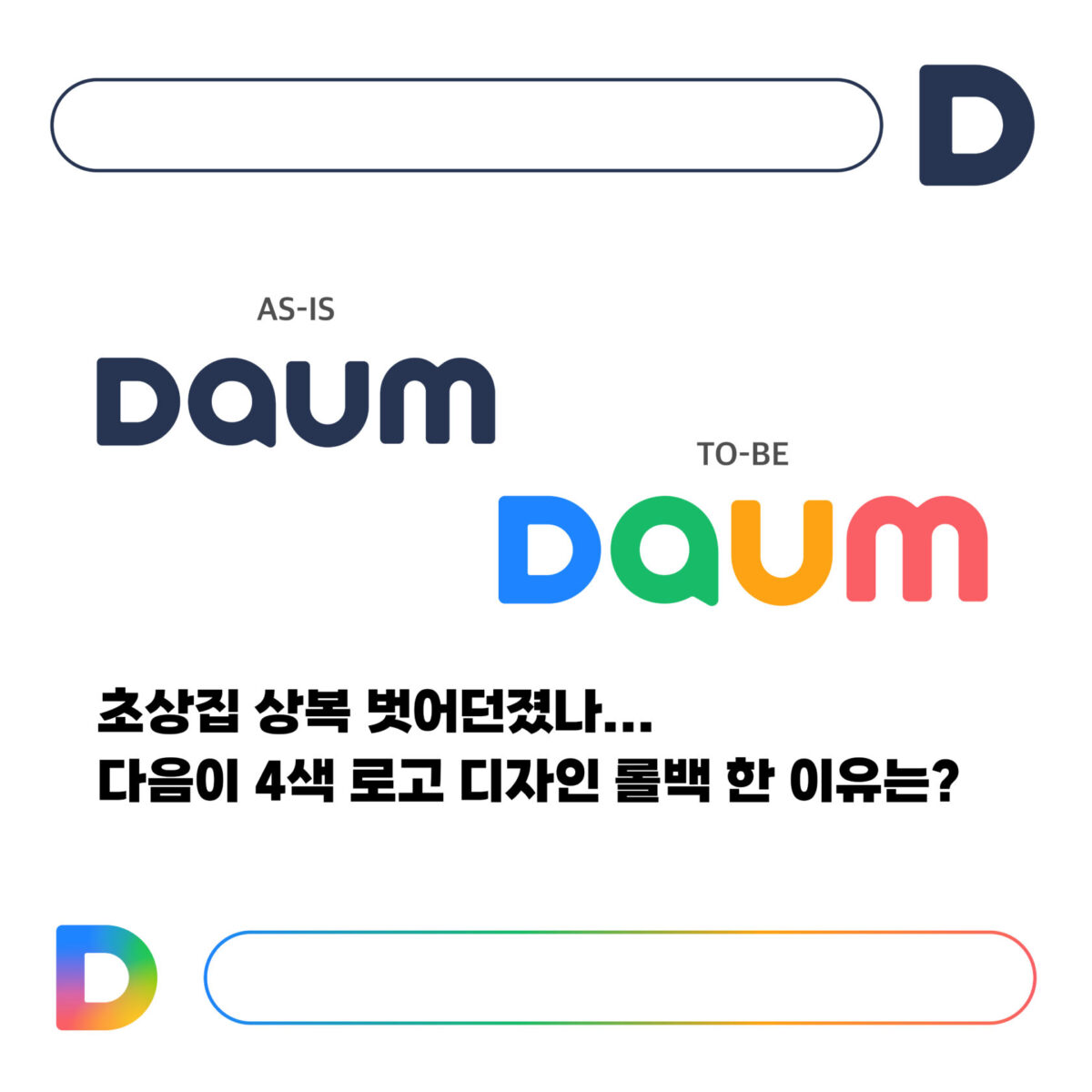 작년 1월, 다음은 “깔끔하고 세련된 모습으로 이용자에게 새롭게 다가가겠다”며 “기존 로고는 네 가지 색상이 섞여 있고, 높낮이가 다른 형태다 보니 복잡하고 오래된 느낌을 주곤 했다”고 딥 블루 색상의 새로운 로고를 소개했다.