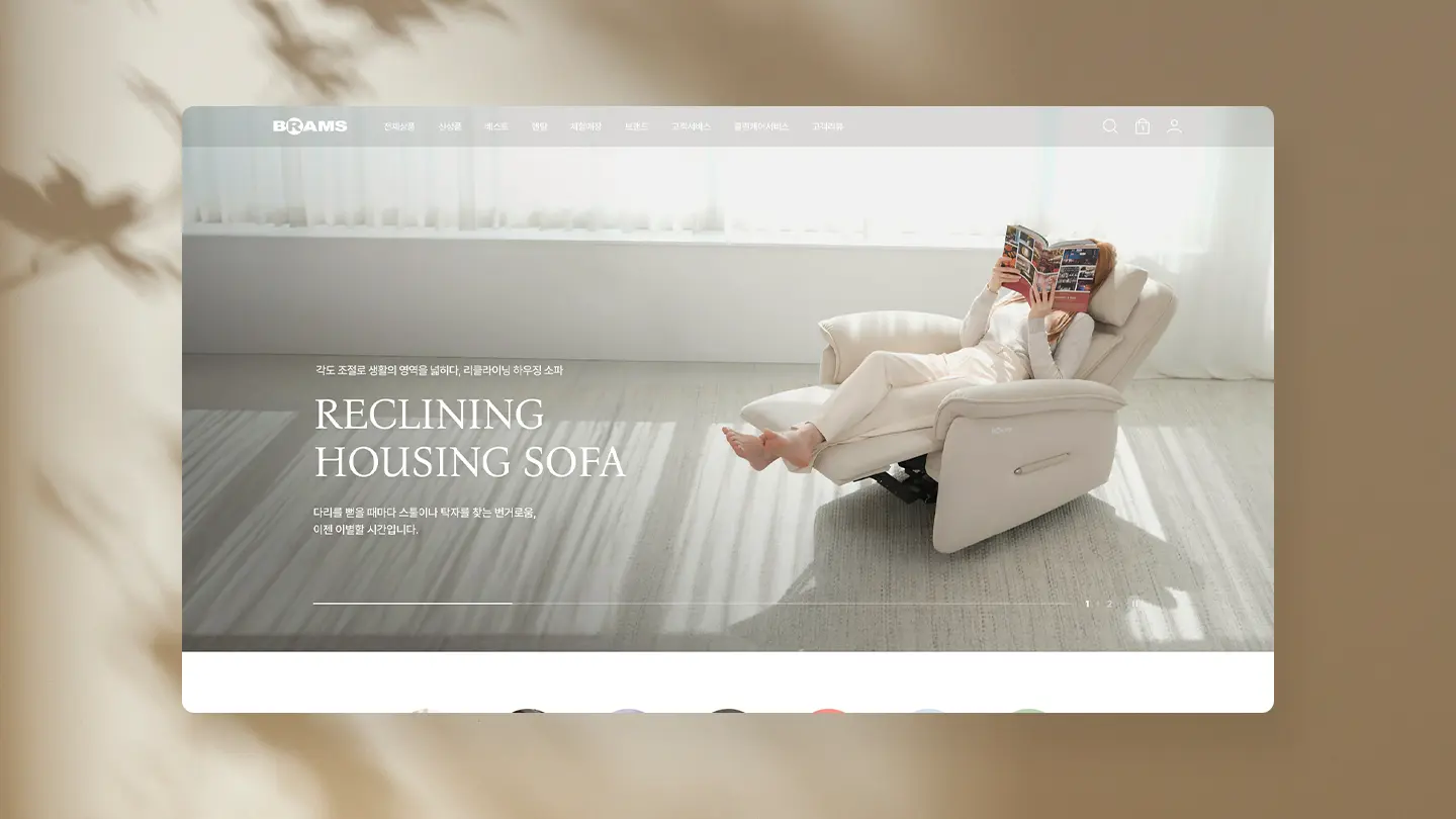 브람스안마의자 공식몰 : 신뢰와 편안함이 공존하는 헬스 리빙 테크몰 프로젝트는 다양한 헬스 리빙 기기를 개발·판매하며 판매와 렌탈, 체험 서비스까지 아우르는 토탈 마케팅 구조를 갖춘 브람스의 공식몰 리뉴얼 프로젝트다. 브랜드의 편안함과 신뢰감 있는 비주얼 설계, 고객의 접근성과 비교 쇼핑을 고려한 사용자 중심의 카테고리 필터링 UX, 구매와 렌탈 동시 특화된 UI 디자인 설계 등이 심사위원들의 호평을 이끌어냈다.
