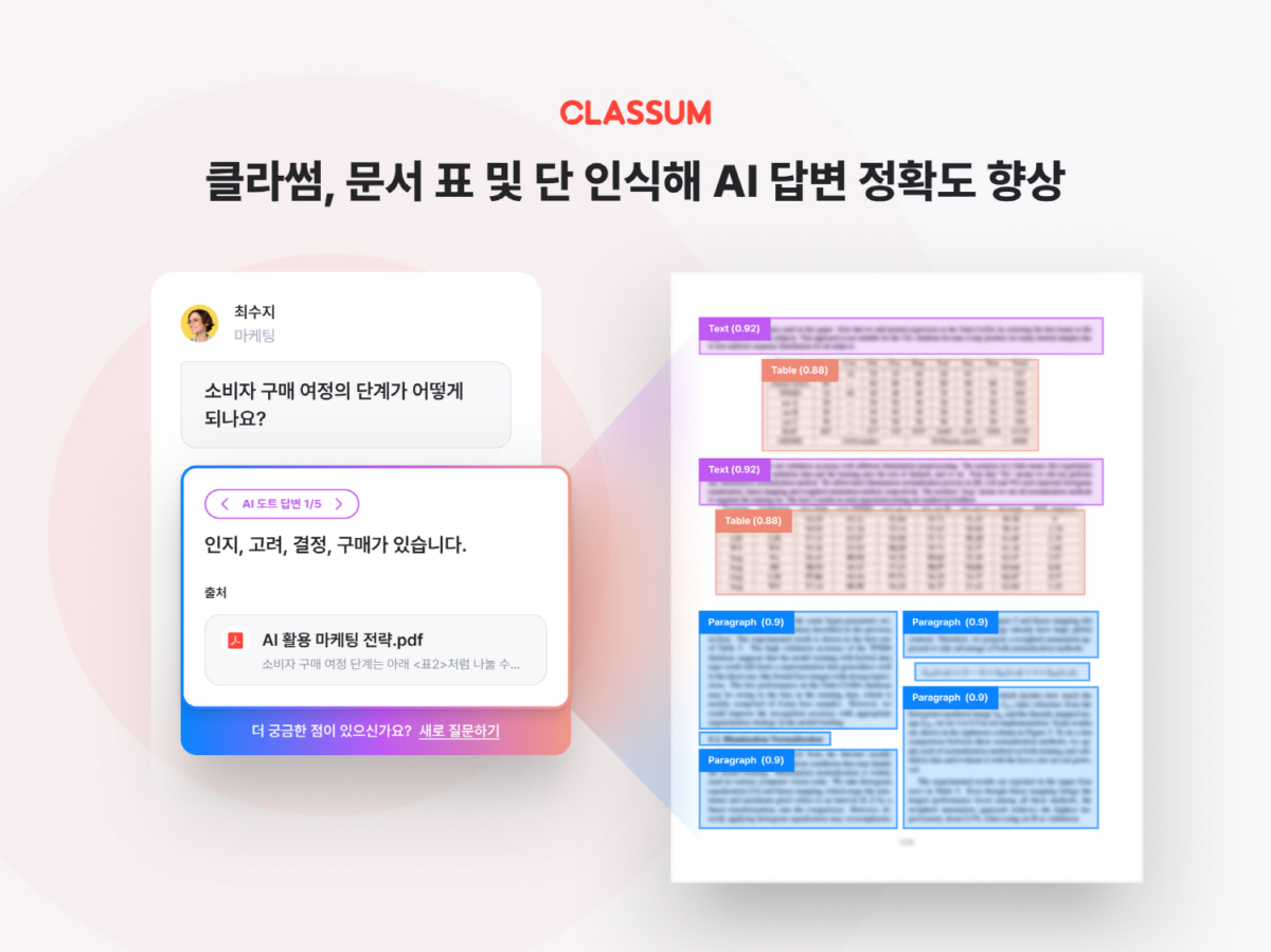 교육 및 지식 공유 플랫폼 클라썸이 AI의 문서 속 표와 단 인식을 강화, 답변의 정확도와 유용성을 높였다(자료=클라썸)