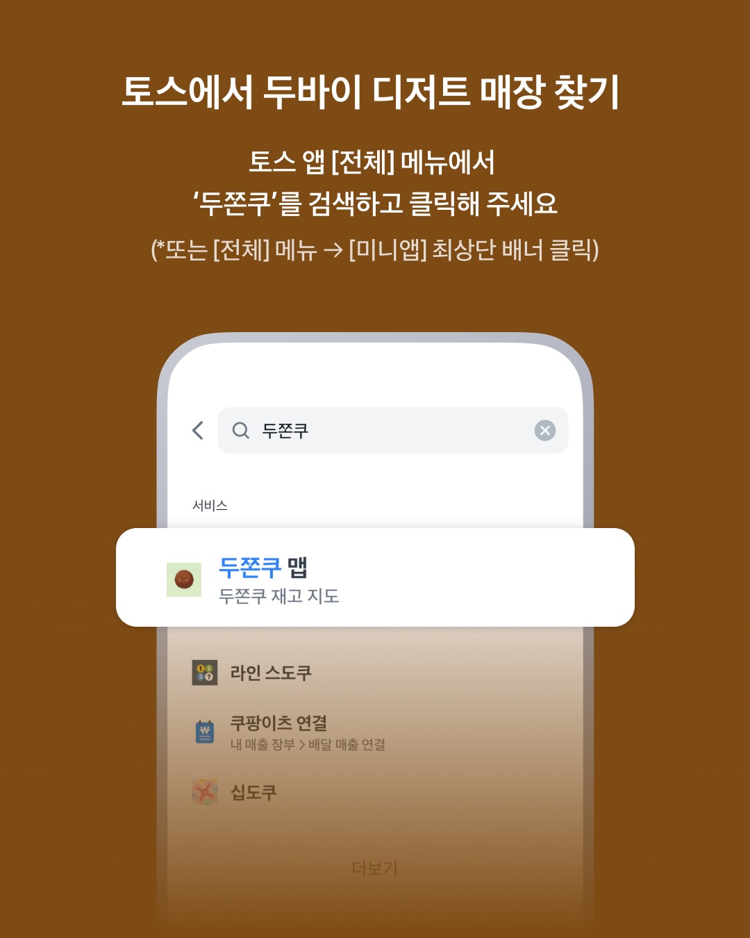 쉽게 말해 사용자가 주변에 두쫀쿠를 팔고 있는 매장의 정보가 궁금하거나, 매장 내 두쫀쿠 재고 정보를 확인하러 들어왔다가, 자연스럽게 토스의 타 서비스들을 접하고, 이용하게 되는 ‘낙수 효과’를 노린 것이죠.
