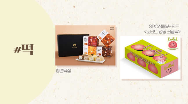 여러분 두 브랜드의 성공 전략 눈치채셨나요? 할매니얼 트렌드를 이끄는 주역이 MZ세대인 만큼 젊은 세대의 입맛을 고려해 생크림, 카스텔라, 티라미슈 등 서양 재료를 떡에 접목한 퓨전 제품을 선보였다는 거예요! MZ세대는 기존 떡과 다른 차별화된 퓨전떡의 매력에 퐁~당 빠졌답니다?