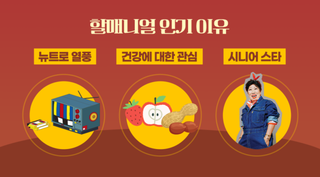 할매니얼 트렌드는 MZ세대에게 신선하고, 재미있는 문화로 다가왔고요. 여기에 오래된 것들을 ‘힙’하게 받아들이고, 새롭게 재해석해 즐기는 뉴트로 열풍도 할매니얼의 인기를 견인했어요. 코로나19 팬데믹을 겪으며 건강에 대한 관심이 급증한 것도 하나의 이유예요. 보통 곡물, 과일 등 원재료를 활용한 전통식품은 건강에 좋을 것이란 인식을 하고 있기 때문이죠. 마지막으로 배우 윤여정, 유튜버 박막례 할머니 등 시니어 스타의 활발한 활동도 할매니얼의 인기요인! MZ세대는 연륜에서 묻어 나오는 위트와, 솔직하고 친근한 매력을 지닌 시니어 스타에게 호감을 느꼈고, 나아가 조부모 세대 자체의 문화를 적극적으로 받아들이게 됐어요.