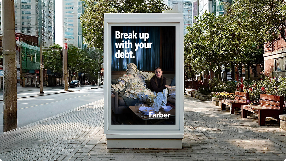 금전적인 문제는 정말 해결하기 골치 아픈 일이에요. 그래서 파버 채무 해결사의 마케팅을 담당한 캐나다의 광고대행사, 로컬 콜렉티브는 채무는 ‘나쁜 파트너’로서 개인의 공간을 불편하게 만들고, 정신적으로 부담을 주는 존재로 묘사했어요. 때문에 ‘헤어짐(break up)’이라는 표현을 사용하며 채무에서 벗어나려면 개인의 결단력이 필요하다는 메시지를 전달했죠.