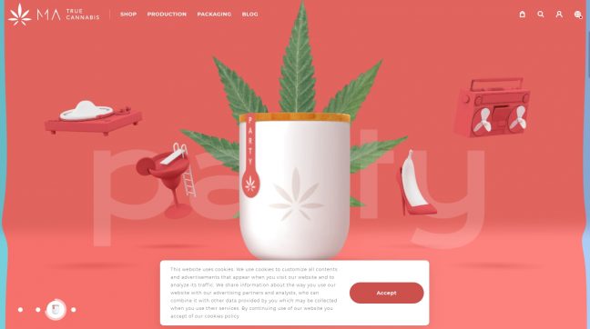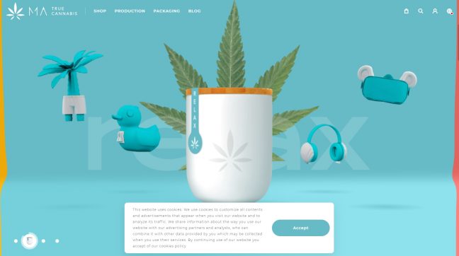 웹사이트에서는 create, relax, party, sleep 각기 다른 네 가지 버전의 대마초 상품을 만나볼 수 있다. 또 대마초의 생산, 포장, 배송 과정을 한눈에 알아볼 수 있다.