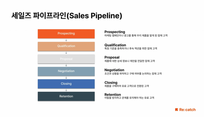 - 파이프라인은 고객이 구매로 이동하는 과정입니다.