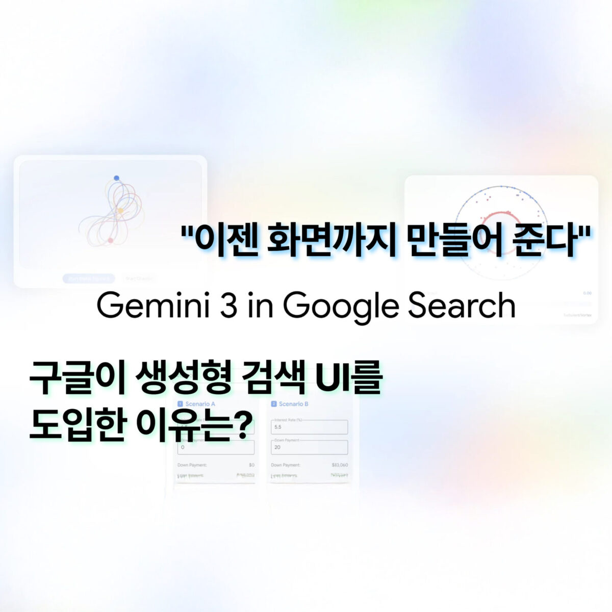 AI 대전환 시대에 우리는 매일 매일 새로운 기술들을 맞이하고 있지만, 지난 11월은 UI·UX 디자이너들에겐 특히나 더욱 AI 시대 신기술의 발전이 체감되던 시기였습니다. 바로 구글이 공식적으로 AI를 활용한 ‘생성형 UI 기술’을 제미나이3 및 구글 검색에 본격적으로 도입한 것 때문입니다. 이에 전문가들은 단순히 검색 서비스의 변화뿐만 아니라 UI·UX 디자인 업계에도 새로운 바람이 불어올 것이라고 말합니다.