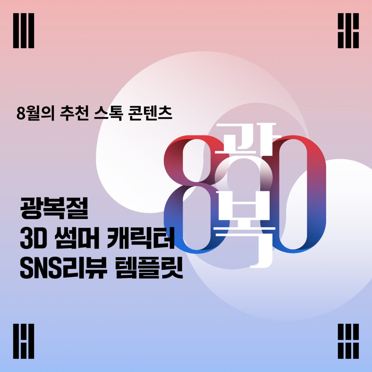 8월의 추천 스톡 콘텐츠 : 광복절 | 3D 썸머 캐릭터 | SNS리뷰 템플릿