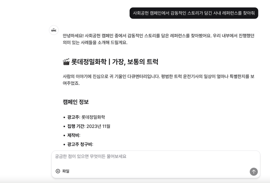 AI 랩스가 개발한 AI 에이전트. 현재 내부 데이터 학습 이후 성능 고도화를 진행 중이다(자료=더에스엠씨)