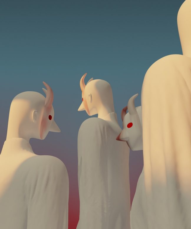 Q. 사물들 외에도 주로 등장하는 존재가 있더라고요. 가면을 쓴 사람들인데요. 사람 같기도 하고 악마 같기도 해서 어떤 존재인지 궁금했어요. 이 인물의 정체는 무엇인가요?