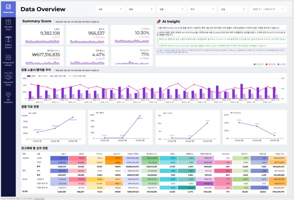 - 매체별 개선 포인트 확인 → 실행력 강화