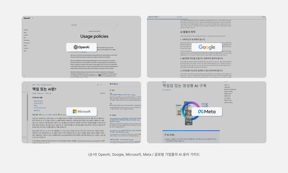 AI 기술이 빠르게 발전하는 만큼 이를 둘러싼 윤리적 고민도 깊어지고 있죠. 오픈AI, 구글, 마이크로소프트, 메타 같은 글로벌 기업들은 자사 서비스와 환경에 맞춰 AI 기술을 신뢰할 수 있도록 윤리 가이드라인을 구축하고 관련 도구를 마련하고 있습니다.