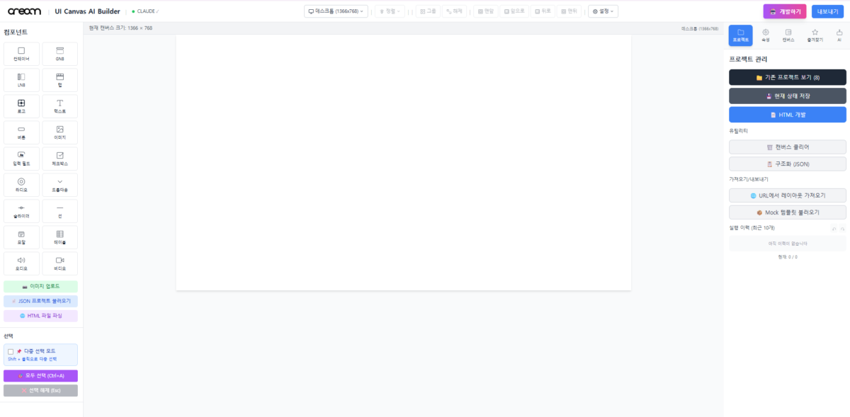 UI 코드 캔버스에는 자연어 입력으로 자동 UI 레이아웃을 생성하는 AI 기반 UI 생성 기능이 탑재됐다. WYSIWYG(위지윅) 방식의 실시간 미리보기 캔버스를 제공하며, 재사용 가능한 컴포넌트 기반 설계로 효율성을 높였다. 다양한 디바이스에 대응하는 반응형 디자인이 적용됐으며, 검색 가능한 템플릿 라이브러리도 제공한다.
