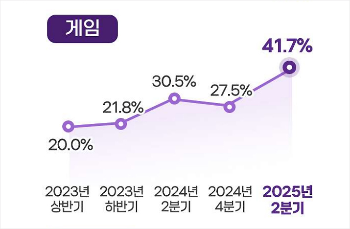 실제 지난 10월 한국콘텐츠진흥원이 발표한 <2025년 2분기 콘텐츠산업 동향분석>에 따르면 국내 게임사의 41.7%가 생성형 AI를 개발에 활용하고 있는 것으로 조사됐다. 이는 타 콘텐츠 업종 평균의 두 배가 넘는 수준이다.