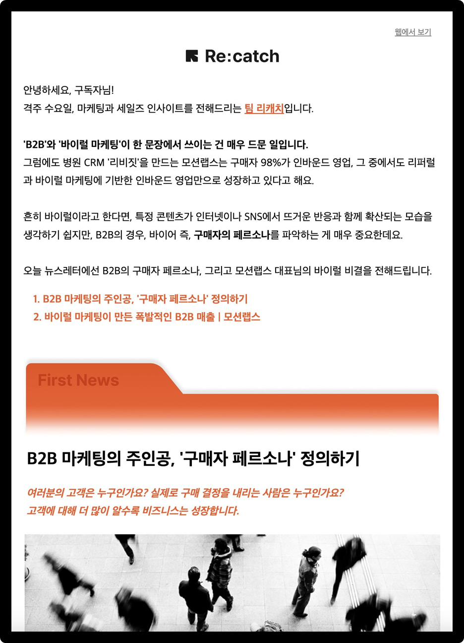 예시로, 최근 리캐치에서 발행된 뉴스레터를 하나 소개해 드릴게요.