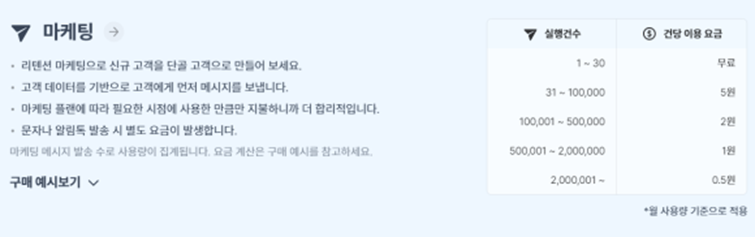 보통 해당 단계에서 매체 선택에 어려움을 겪는 경우가 많습니다. 내부 데이터를 활용한 메세지 발송 외에도 외부 데이터도 어떤 데이터를 활용해 적합한 고객에게 도달할지 등 PAID 광고와 마찬가지로 문자 발송과 관련해서도 매체별 캠페인 구성이 필요하기 때문입니다.